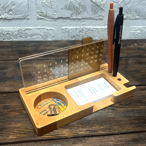 Настольные календари с деревянным основанием — это стильный и удобный аксессуар, который прекрасно впишется в рабочее пространство, станет хорошим корпоративным подарком или частью фирменного стиля. В Алматы мы предлагаем производство таких календарей из натуральных материалов с применением современных технологий и индивидуального дизайна.
