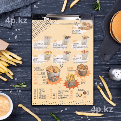 Формат меню может варьироваться от обычных A4 или A5 до более интересных форм — квадрат или складной дизайн. Это зависит от предпочтений и требований заказчика, а также от удобства использования меню для посетителей.