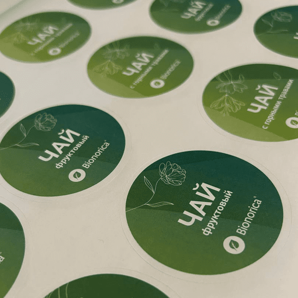 Круглые наклейки — идеальны для косметики, фуд-продуктов, напитков, упаковки