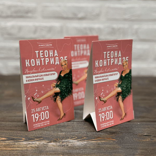 Трехгранные тейбл-тенты — это эффективные рекламные конструкции для размещения информации на столах или прилавках, позволяющие отображать сразу несколько сообщений, таких как информация о бренде, акциях или меню.